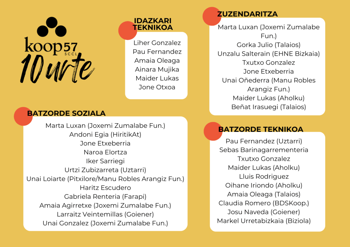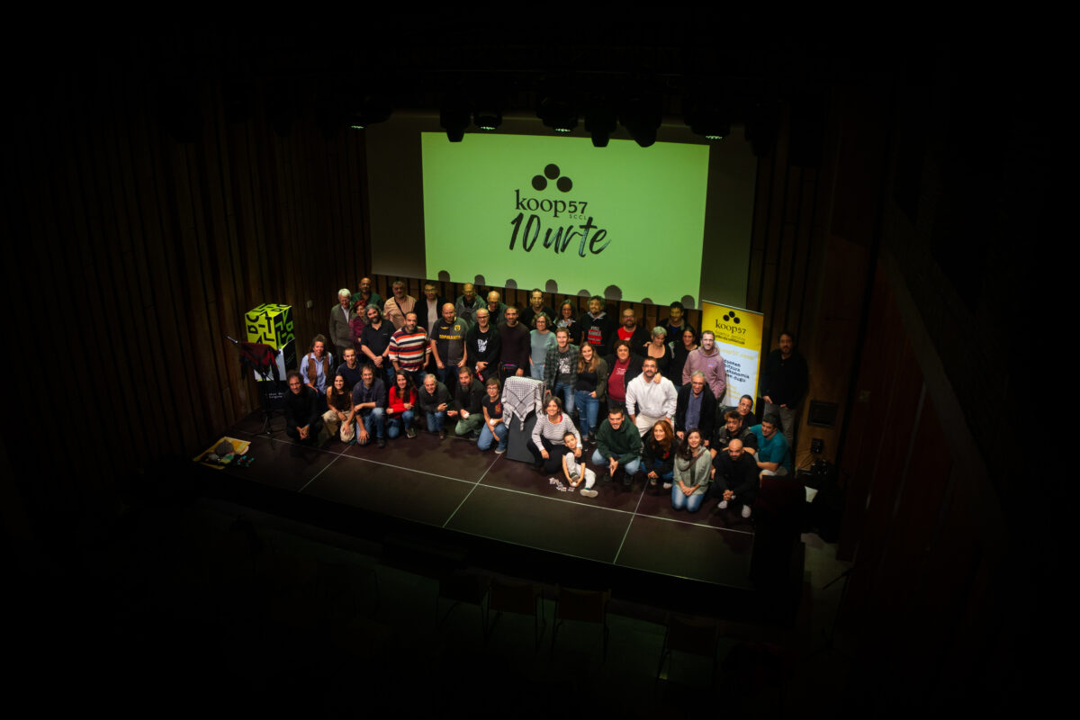 Logika hau errotik iraultzea posible dela demostratu du 10 urtez Koop 57k. Urteurrena ospatzeko, urriaren 25ean Gasteizko Izaskun Arrue Kulturgunean saretuta dauden hamarnaka lagun bildu dira.