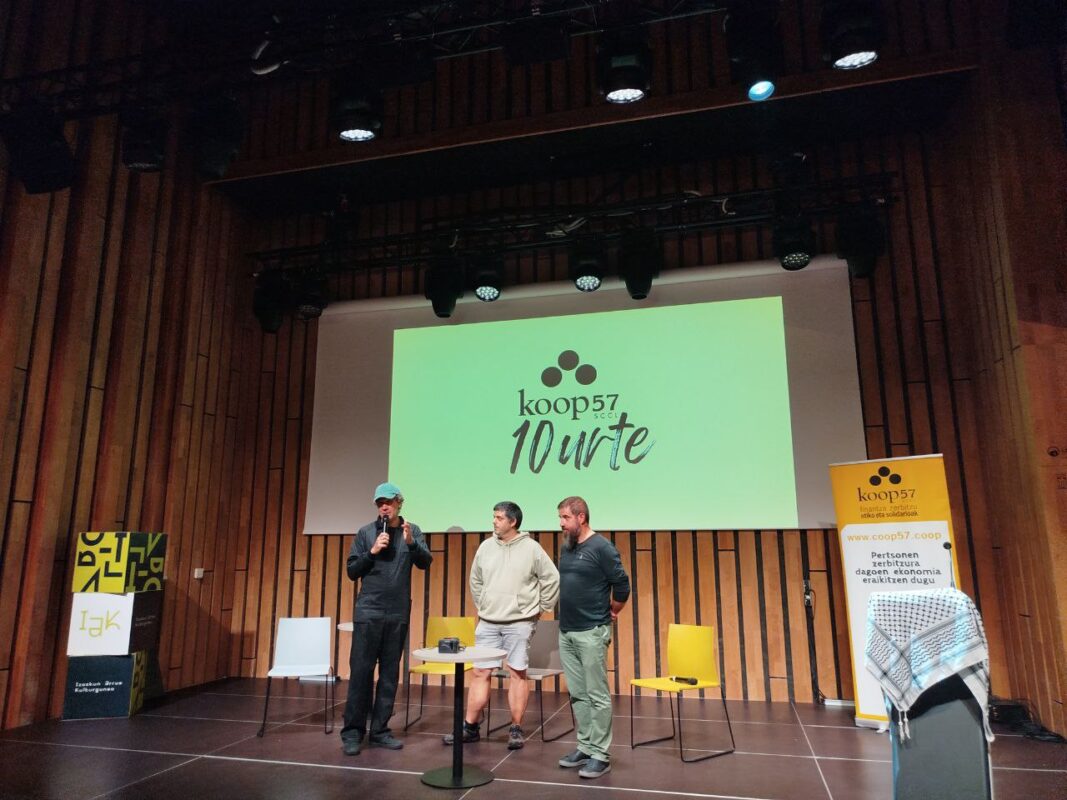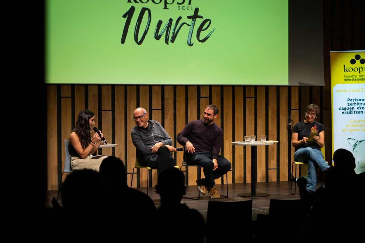 Jone Otxoa (Koop 57ko idazkari teknikoa), Ramón Pascual (Coop 57ko sortzaileetako bat), Liher González (Koop57ren bultzatzaileetako bat) eta Jone Etxeberria (Koop 57ko lehendakaria).