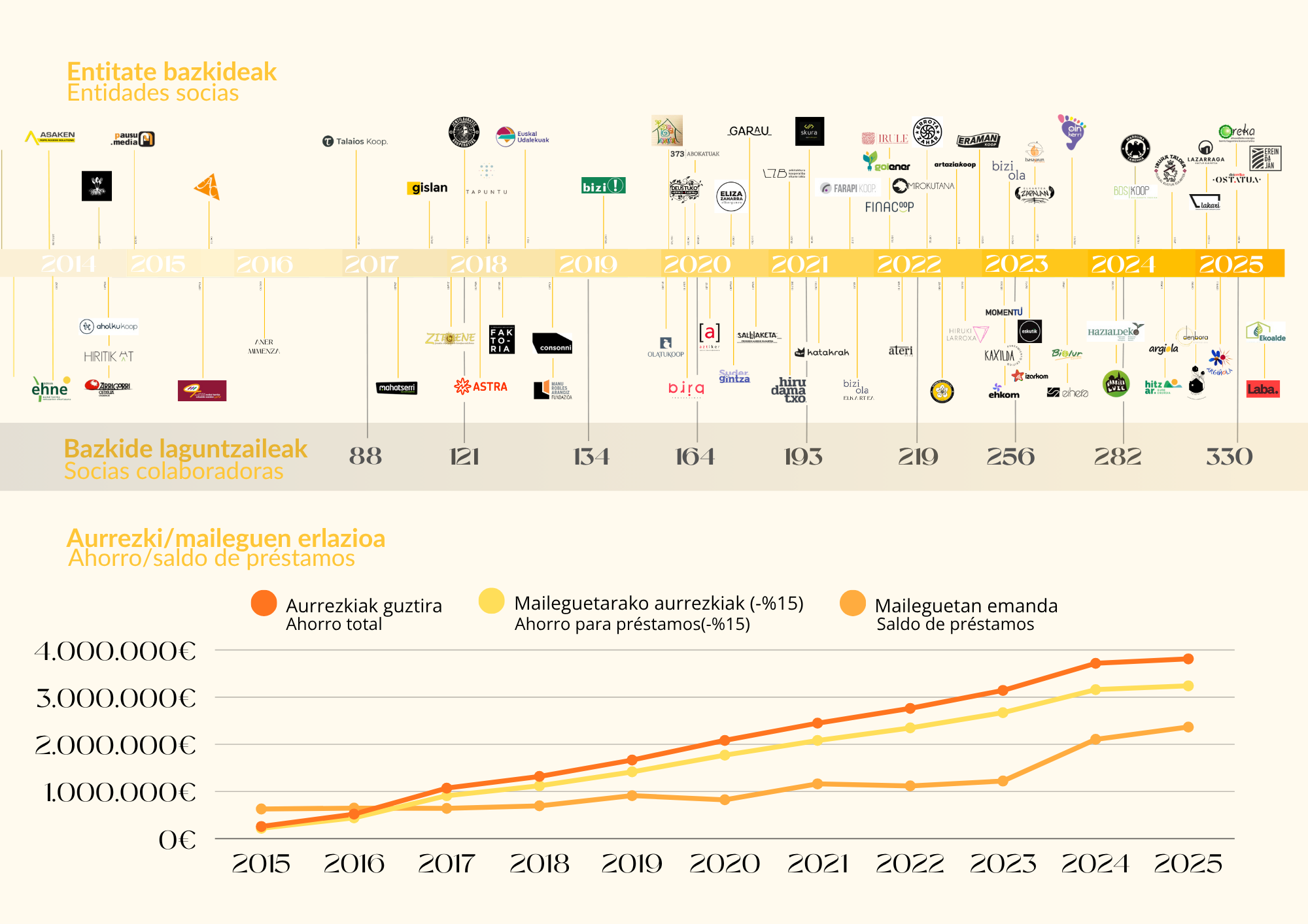 Merkatu neoliberalarekin alderatuz ez-ohikoa den logika eraldatzaile horri “arnasgune politikoa” deritzo Jone Etxeberria Agirre Koop 57ko lehendakariak. Jarrera horrekin, Euskal nazioan Koop-57ren hazkundea esponentziala izaten ari dela erakusten dute datuek: 80 entitatek eta 330 norbanakok 4 milioi euroko ekarpena egiten dute. Haiei esker, 2015etik hona, 5,6 milioi euro eman dira osotara 86 mailegutan, azken bost urteetan bereziki.